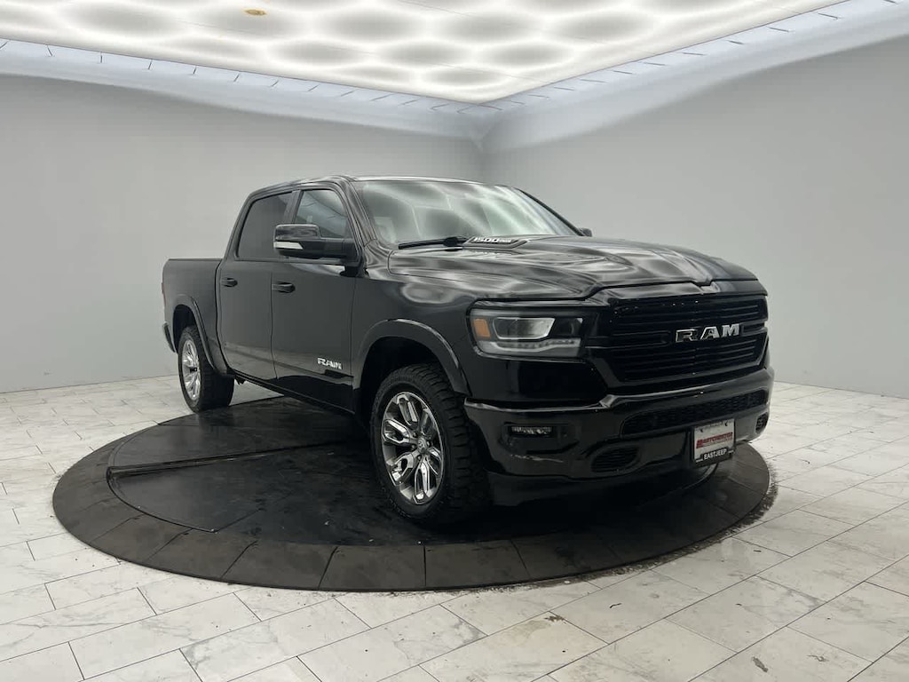 4x4, Heated Driver Seat, Cooled Driver Seat, Back-Up Camera, iPod/MP3 Input Non-Smoker vehicle Ram Laramie with Diamond Black Crystal Pearlcoat exterior and Black interior features a 8 Cylinder Engine with 305 HP at 6400 RPM*.