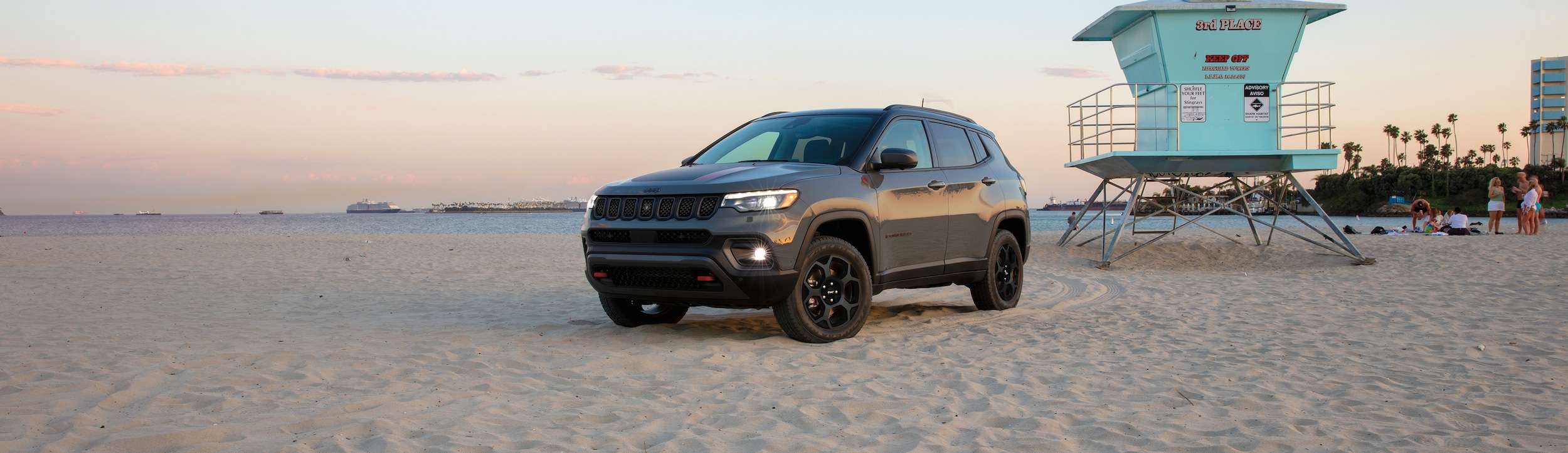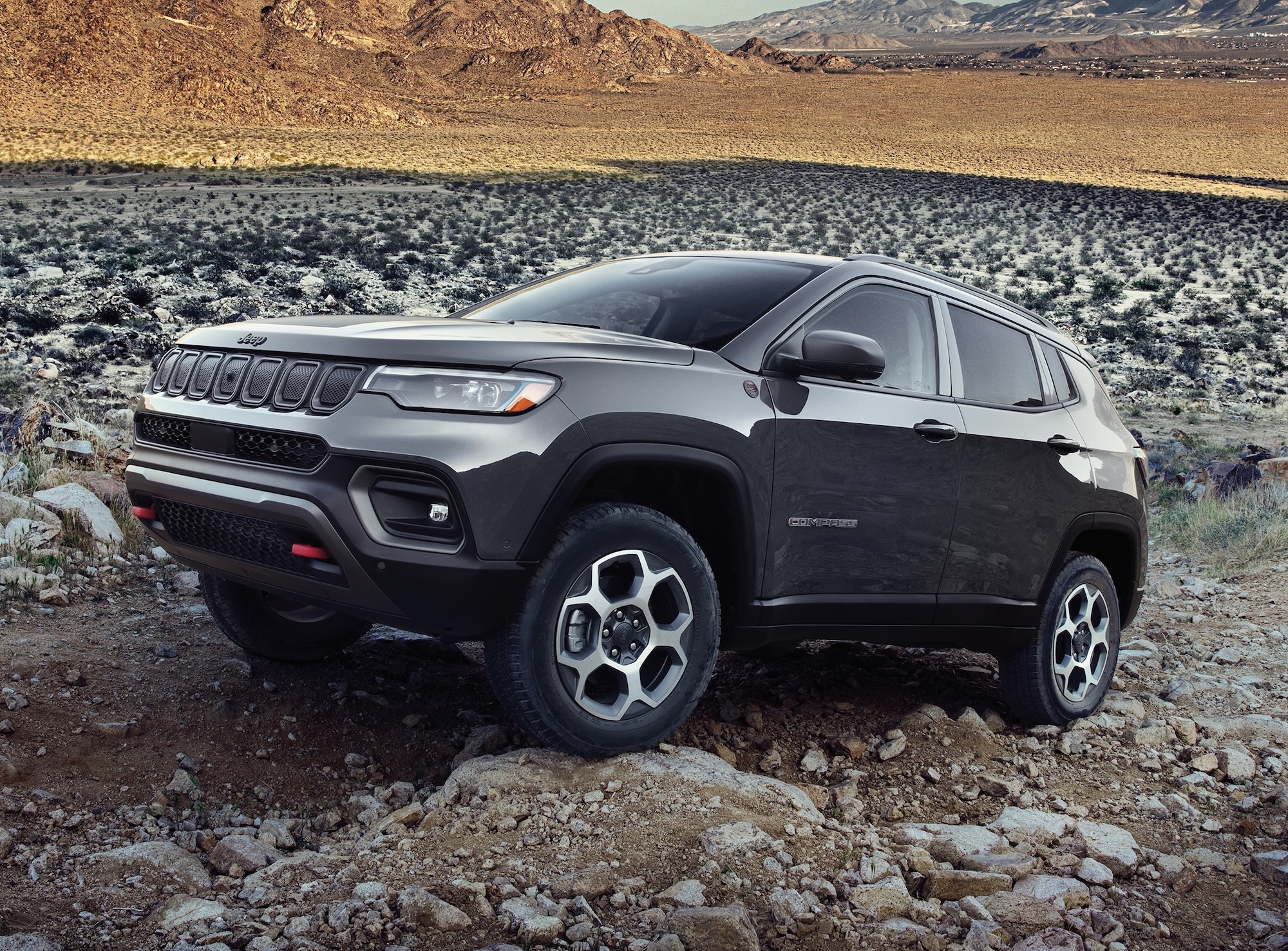 The Compass' sleek and sporty exterior features sculpted lines, a distinctive seven-slot grille, and available LED lighting. A variety of wheel designs, ranging from 17 to 19 inches, allow you to customize your Compass to match your unique style.